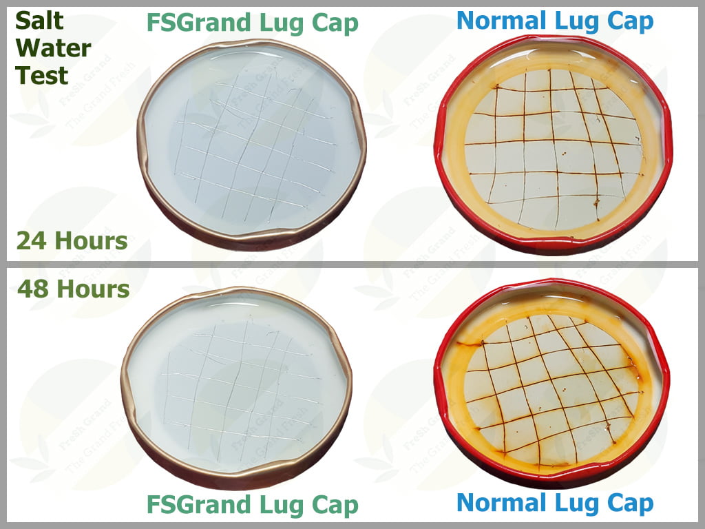 Lug cap tested in salt water, after 24 hours and 48 hours. Aluminum lug cap can be sustain after the test.